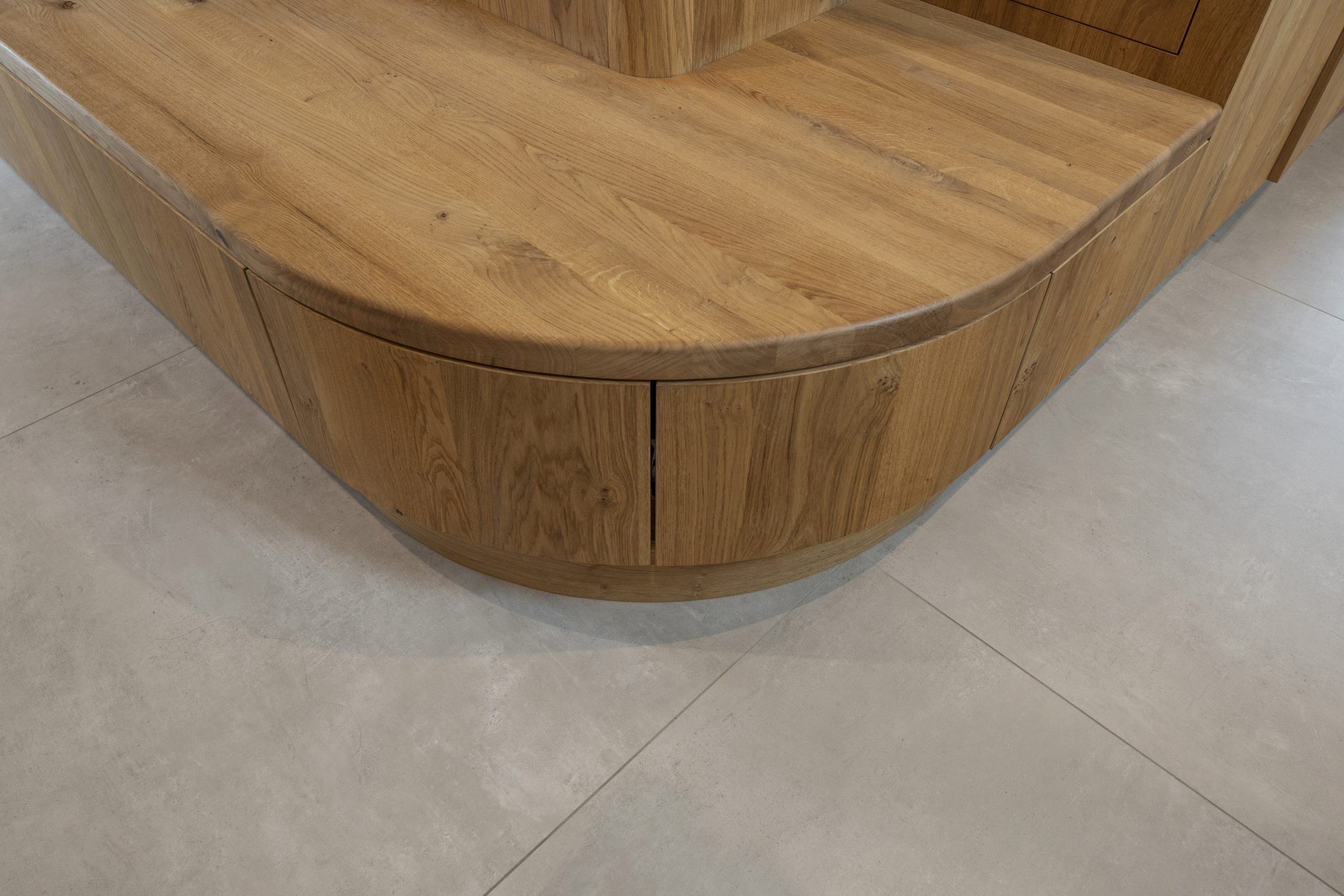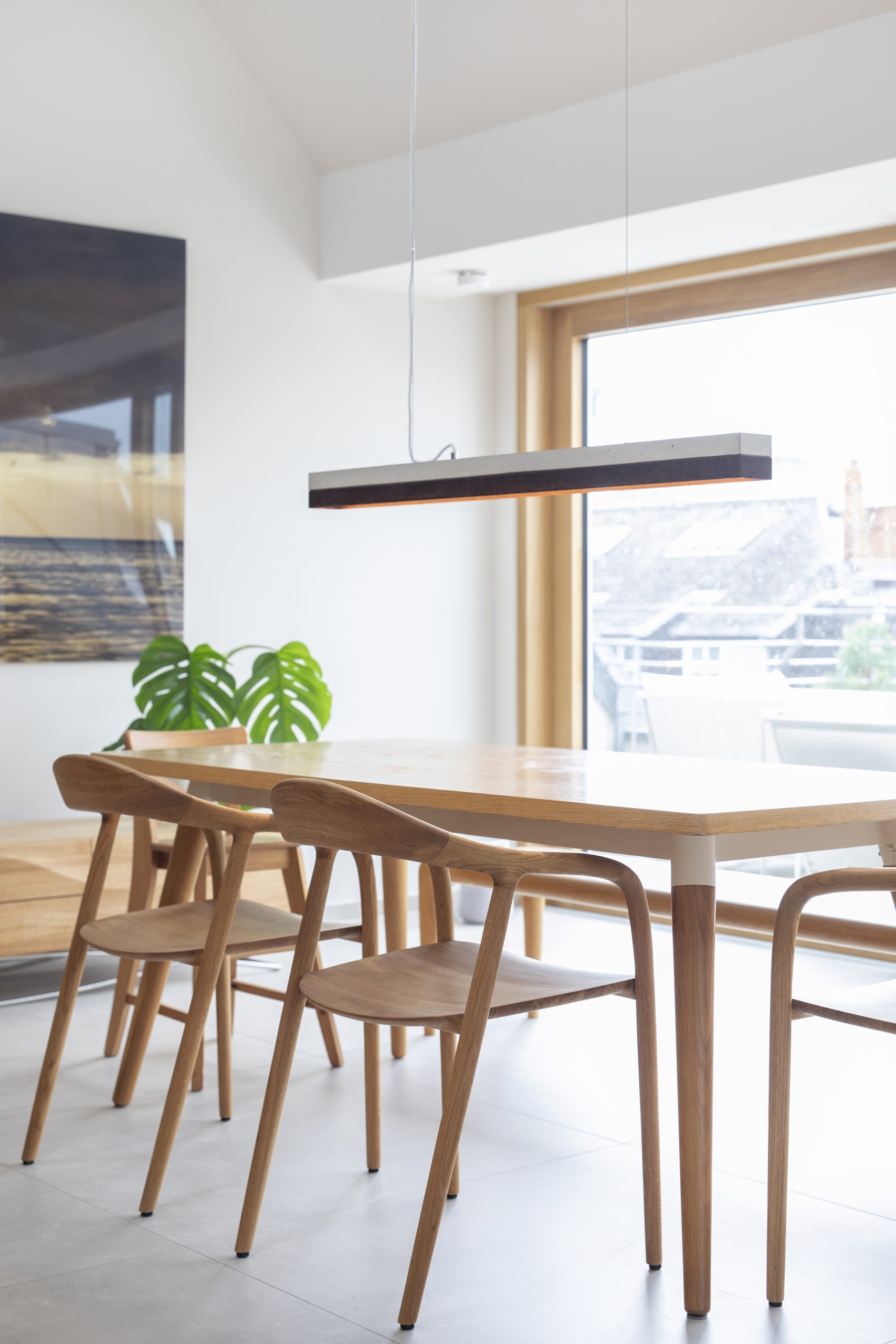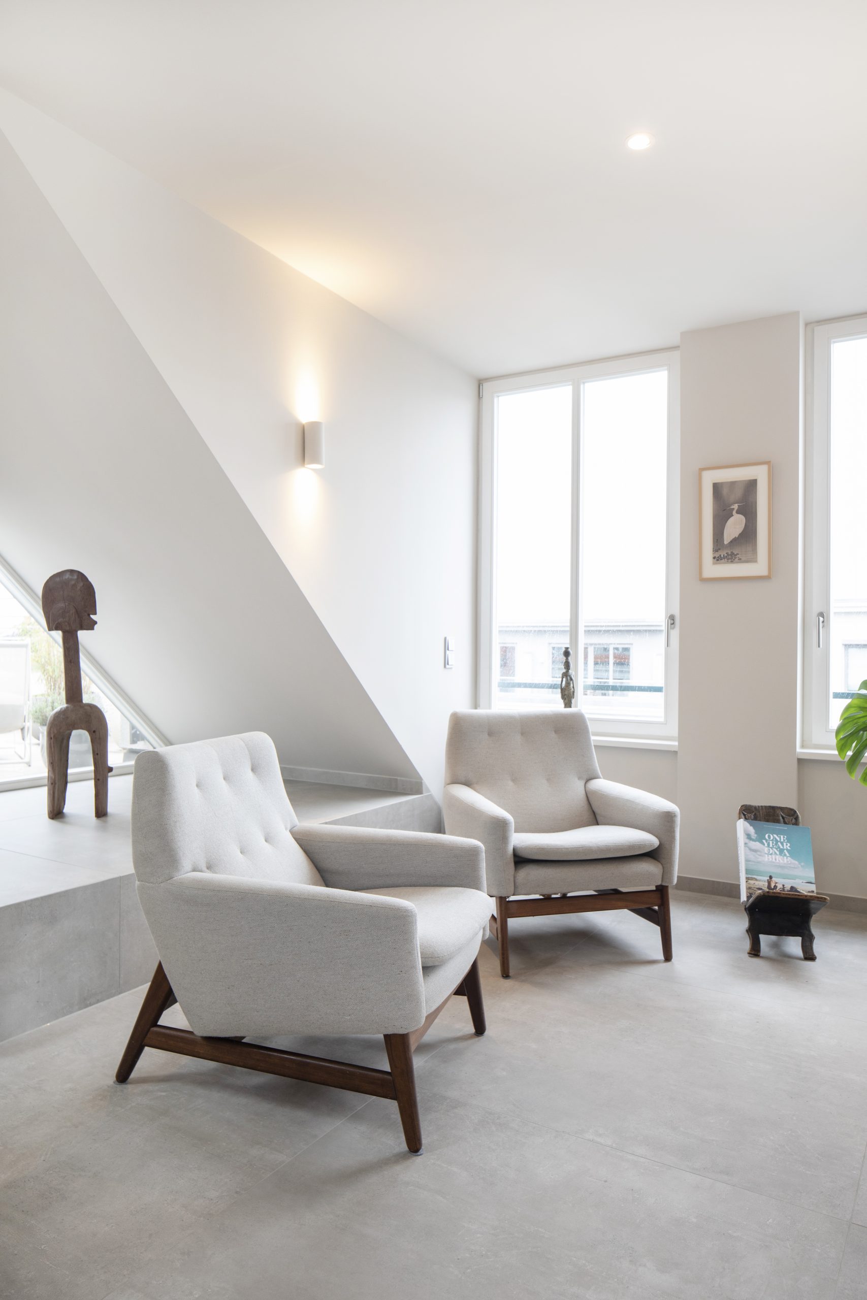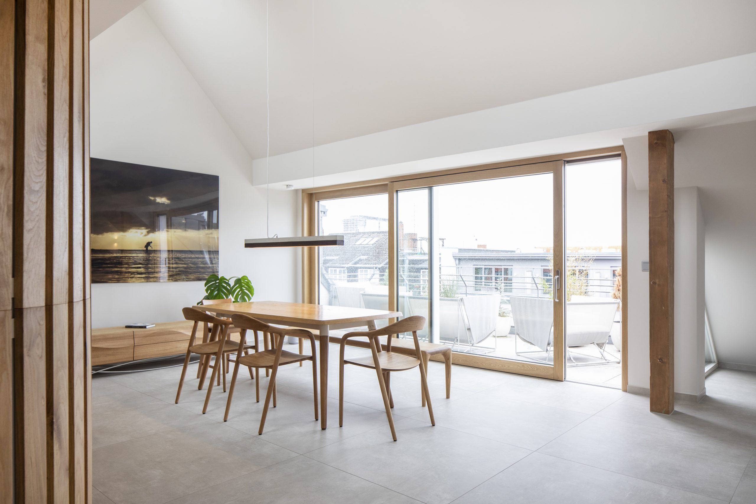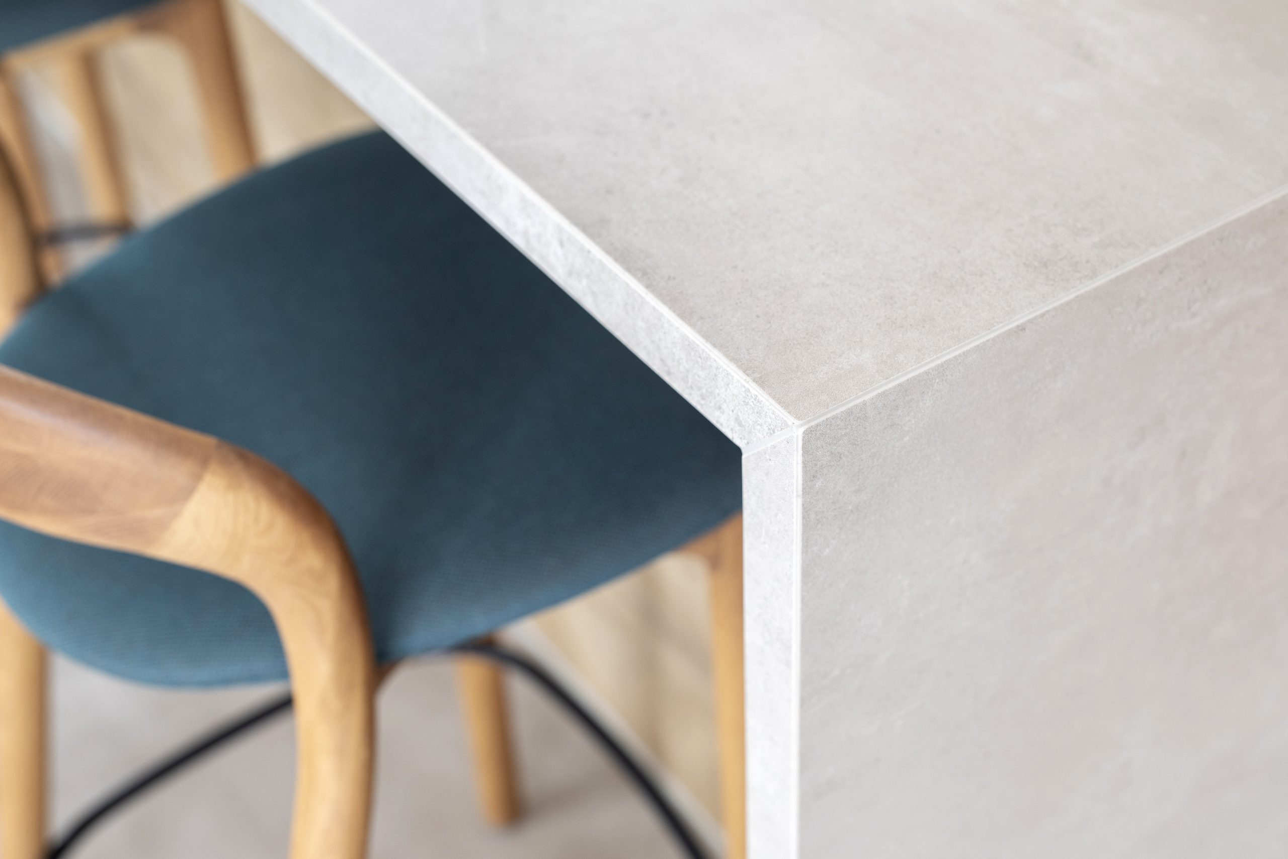 Rund 400 Quadratmeter Urban Great Ivory wurden verarbeitet und bilden eine klare, durchgängige Gestaltungslinie. Vier Bäder, zwei Doppelwaschtische, eine Küche, zwei Terrassen und eine Sitzbadewanne sind in einem einheitlichen Materialkonzept umgesetzt.