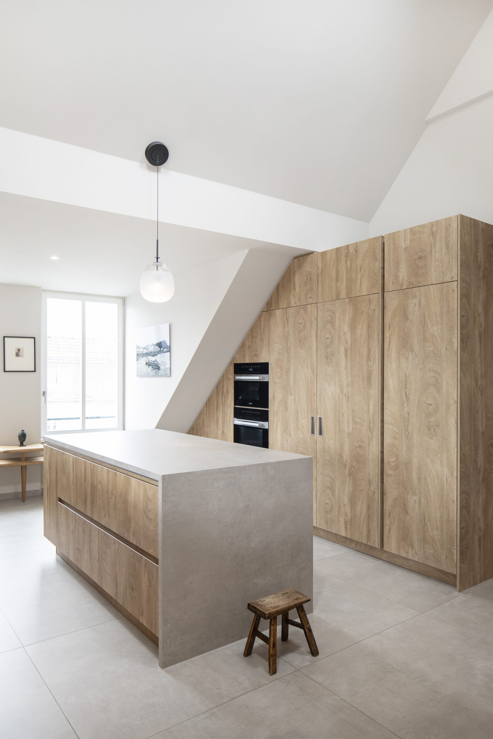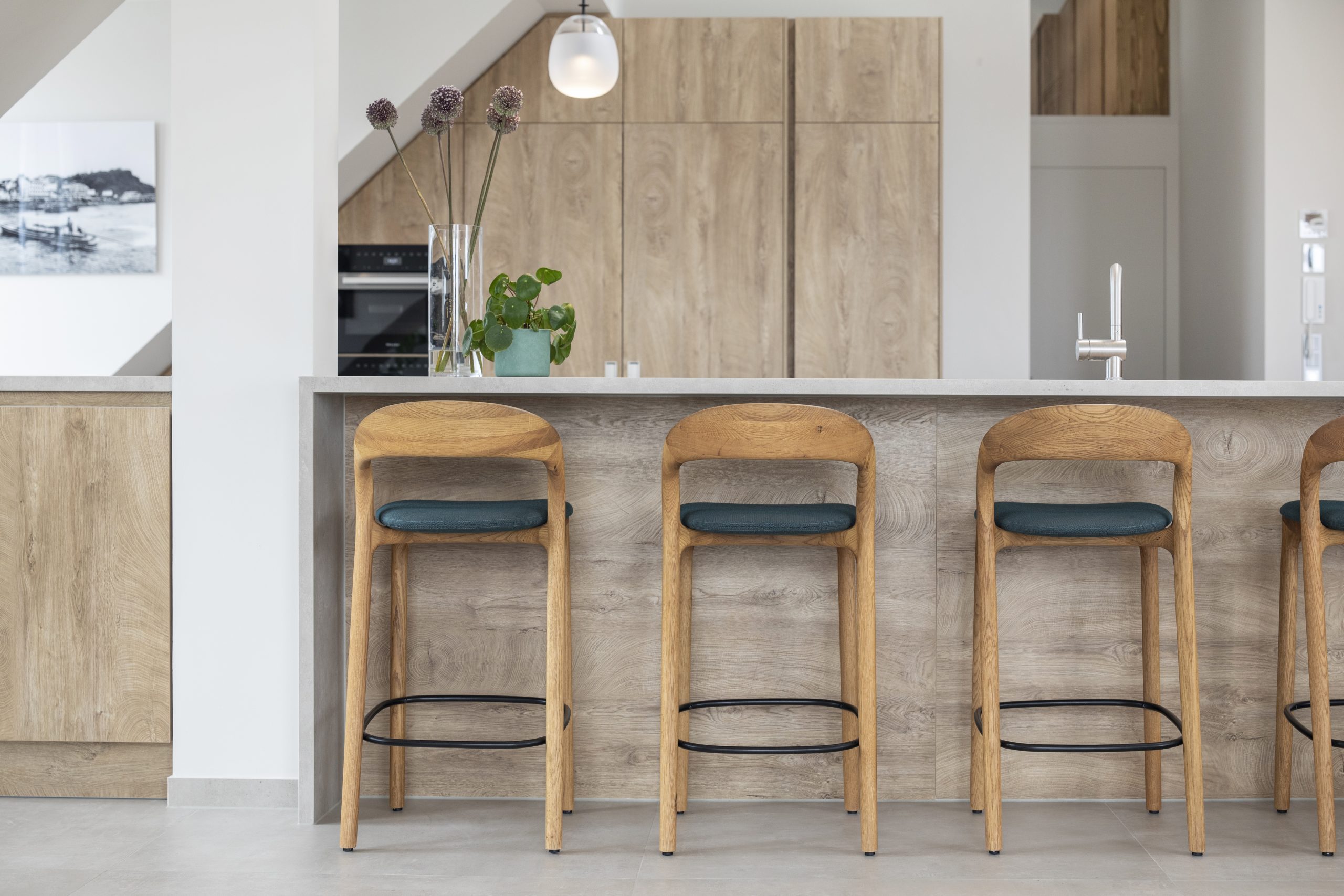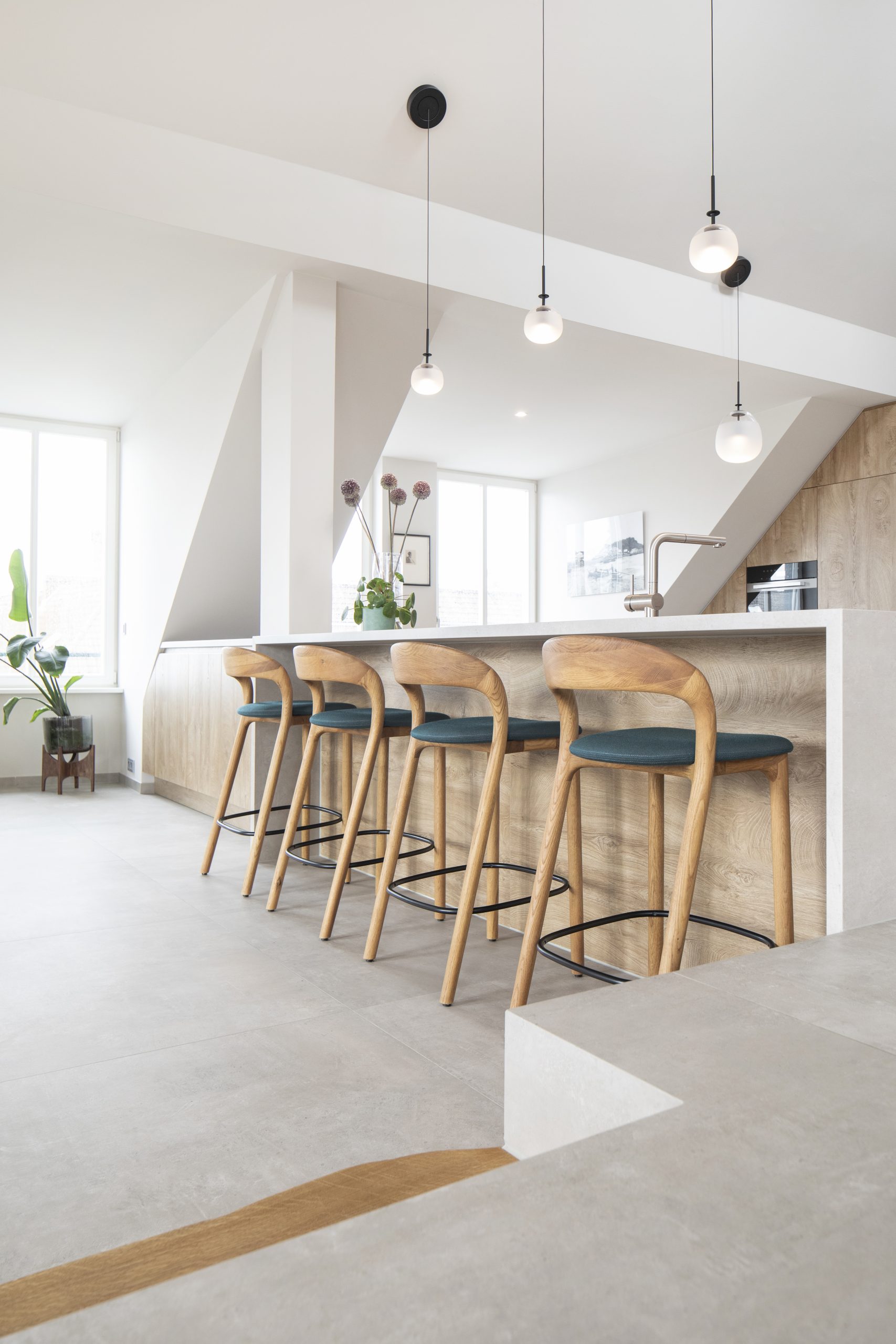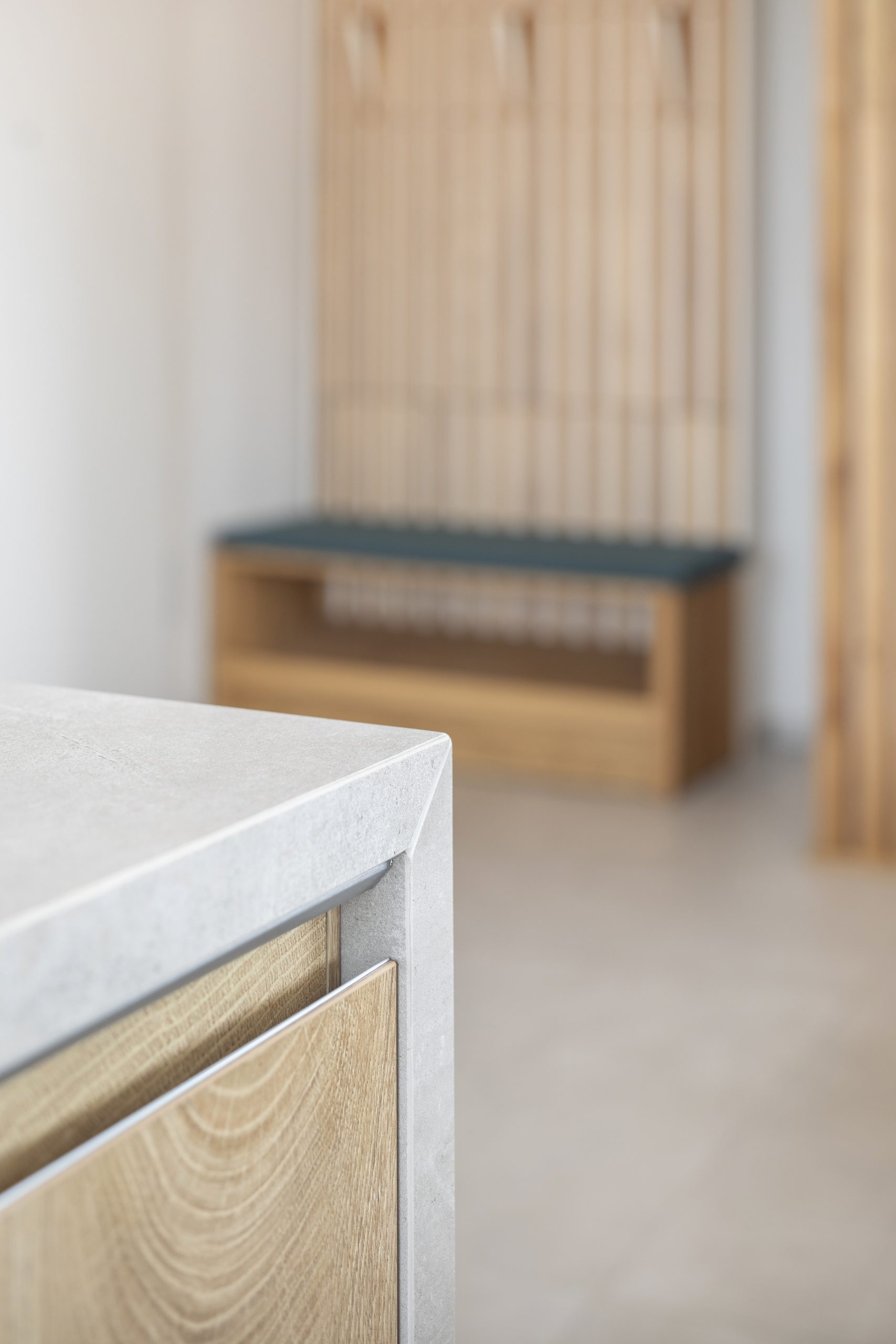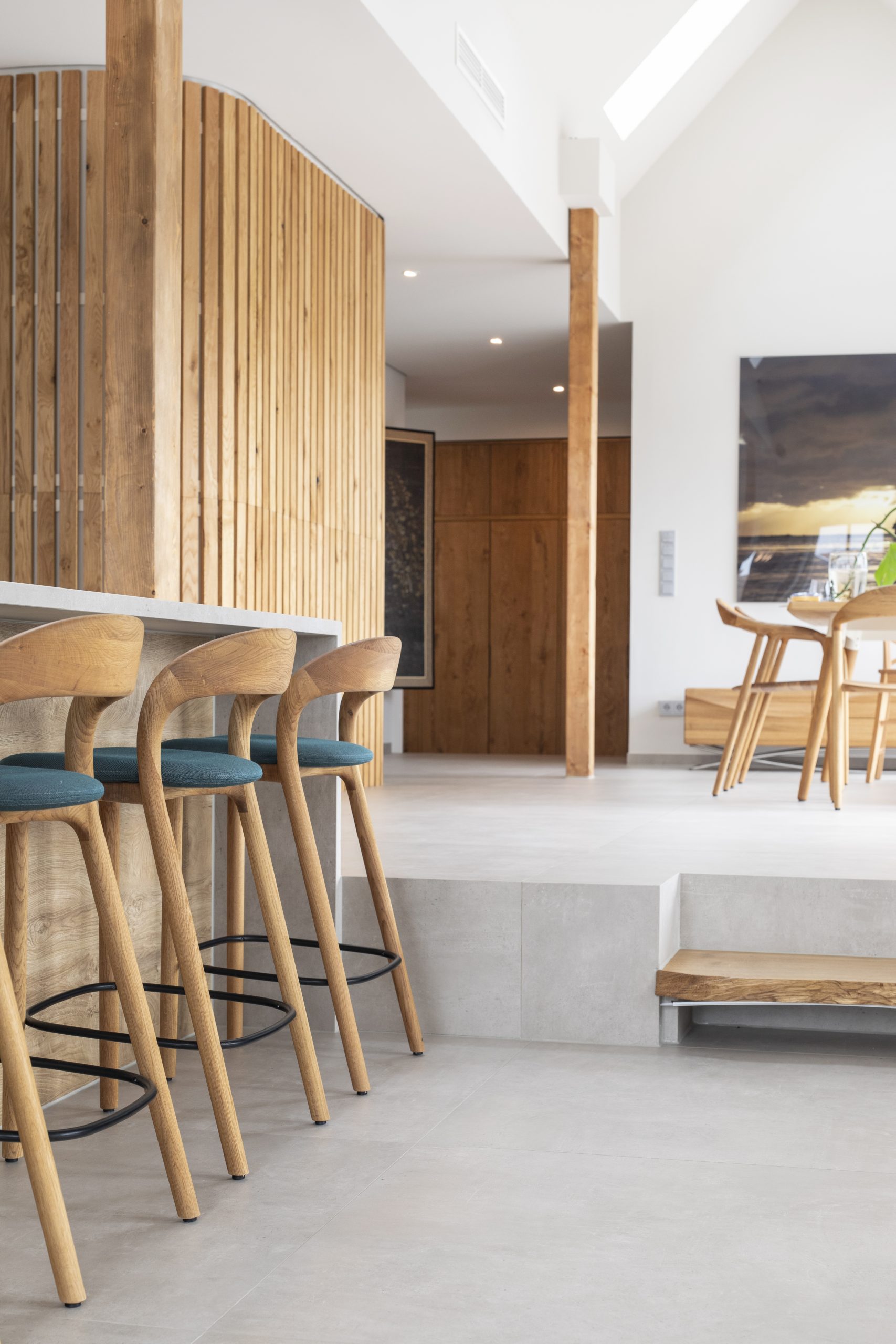 In diesem Projekt zieht sich eine einzige Keramik durch alle Bereiche – vom Boden über die Küche bis in die Bäder.
